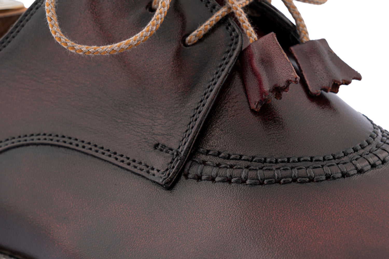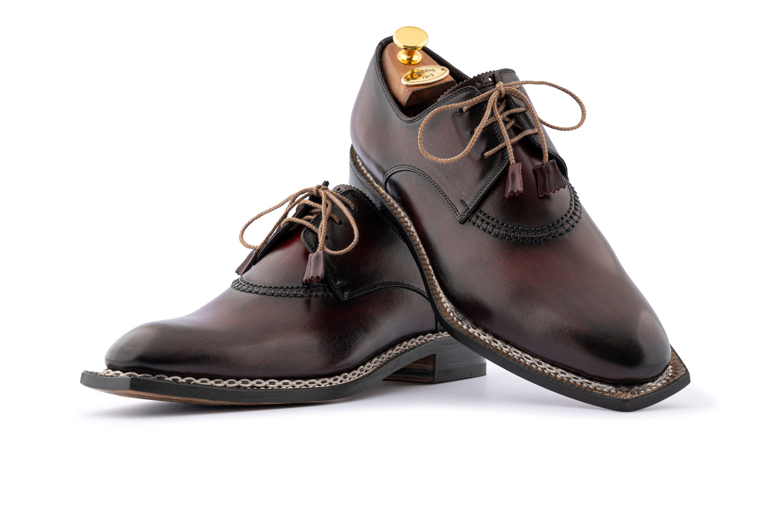 Derby in hand-painted calfskin, handcrafted stitching on the upper and leather sole with non-slip insert. A shoe that tells a story of passion and technique.