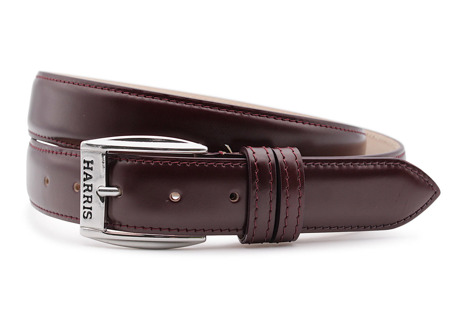 Der raffinierte und unverzichtbare Harris-Gürtel aus burgunderrotem, gebürstetem Leder verleiht Ihrem Look einen Hauch von Charakter. Es besteht aus hochwertigem Leder mit handpoliertem Finish und ist mit einer gebürsteten Metallschnalle ausgestattet, die ihm eine unverwechselbare Note verleiht.