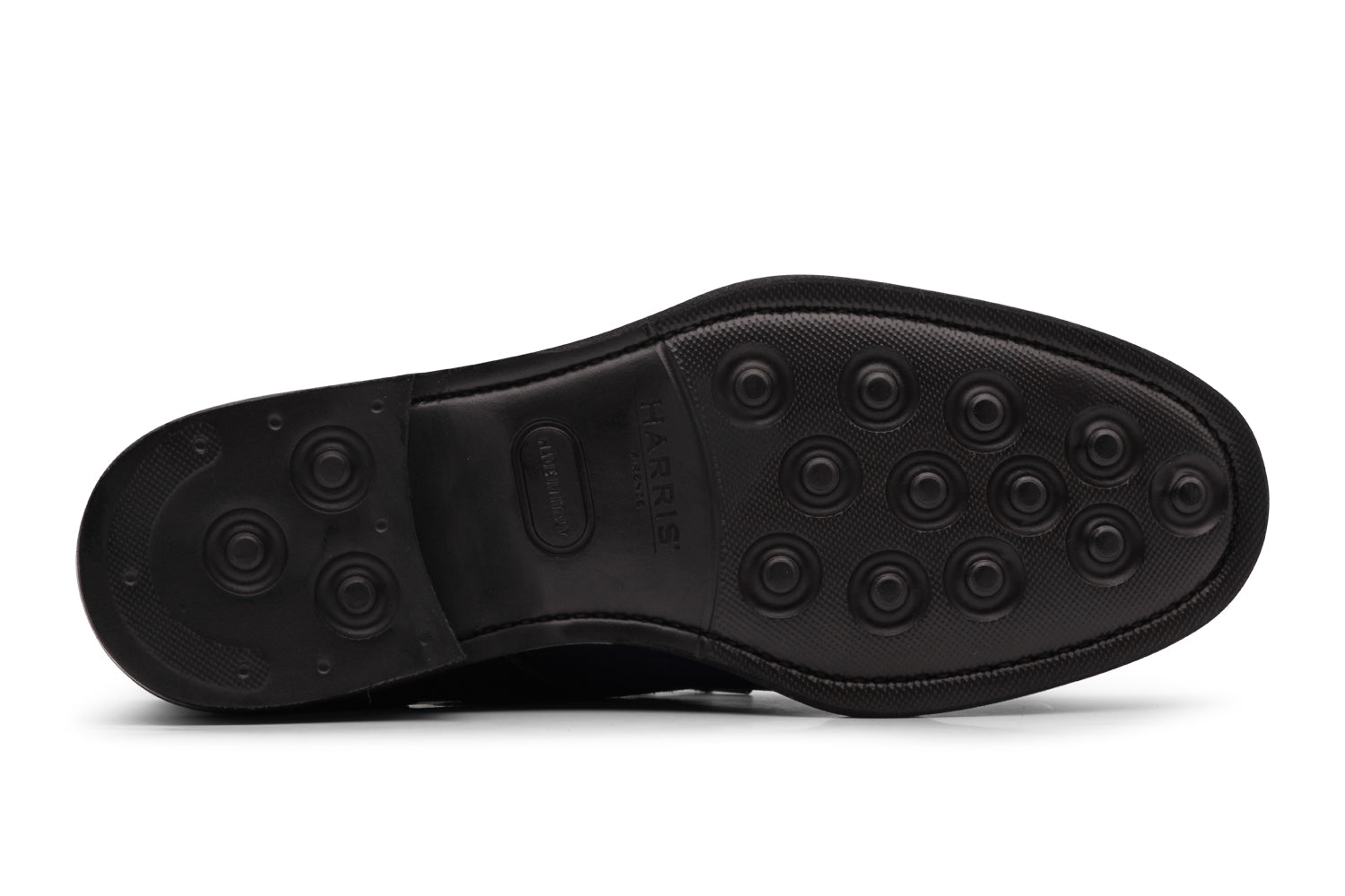 Ein dunkelblauer Wildleder-Derby mit handgetönten Details, die seine Farbtiefe verstärken. Genähter Rahmen, Dainite-Gummisohle und Blake Rapid-Herstellung für einen modernen und raffinierten Stil.