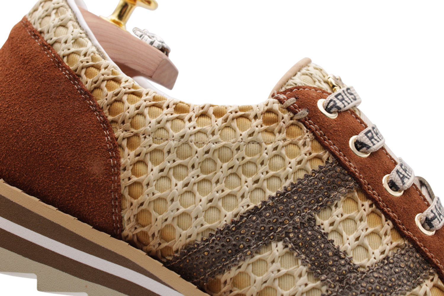 Las zapatillas de deporte Harris firmadas son ideales para completar sus atuendos con un toque de clase, sin renunciar a la comodidad gracias a la suela del corredor. Hecho de rafia y gamuza tejidas, con detalles de cuero impresos de raza, se destacan por su diseño refinado con detalles que los hacen únicos como Harris Plate