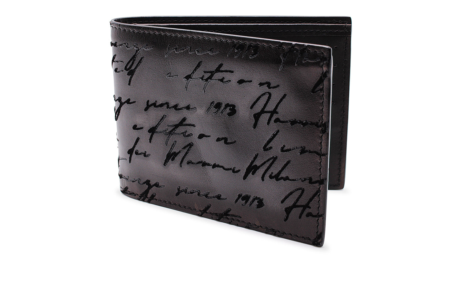 Ce portefeuille est réalisé en cuir pleine fleur, lisse et peint à la main, caractérisé par l'imprimé Writer qui ajoute une touche audacieuse et distinctive. Un accessoire essentiel et raffiné, expression d'un savoir-faire authentique.