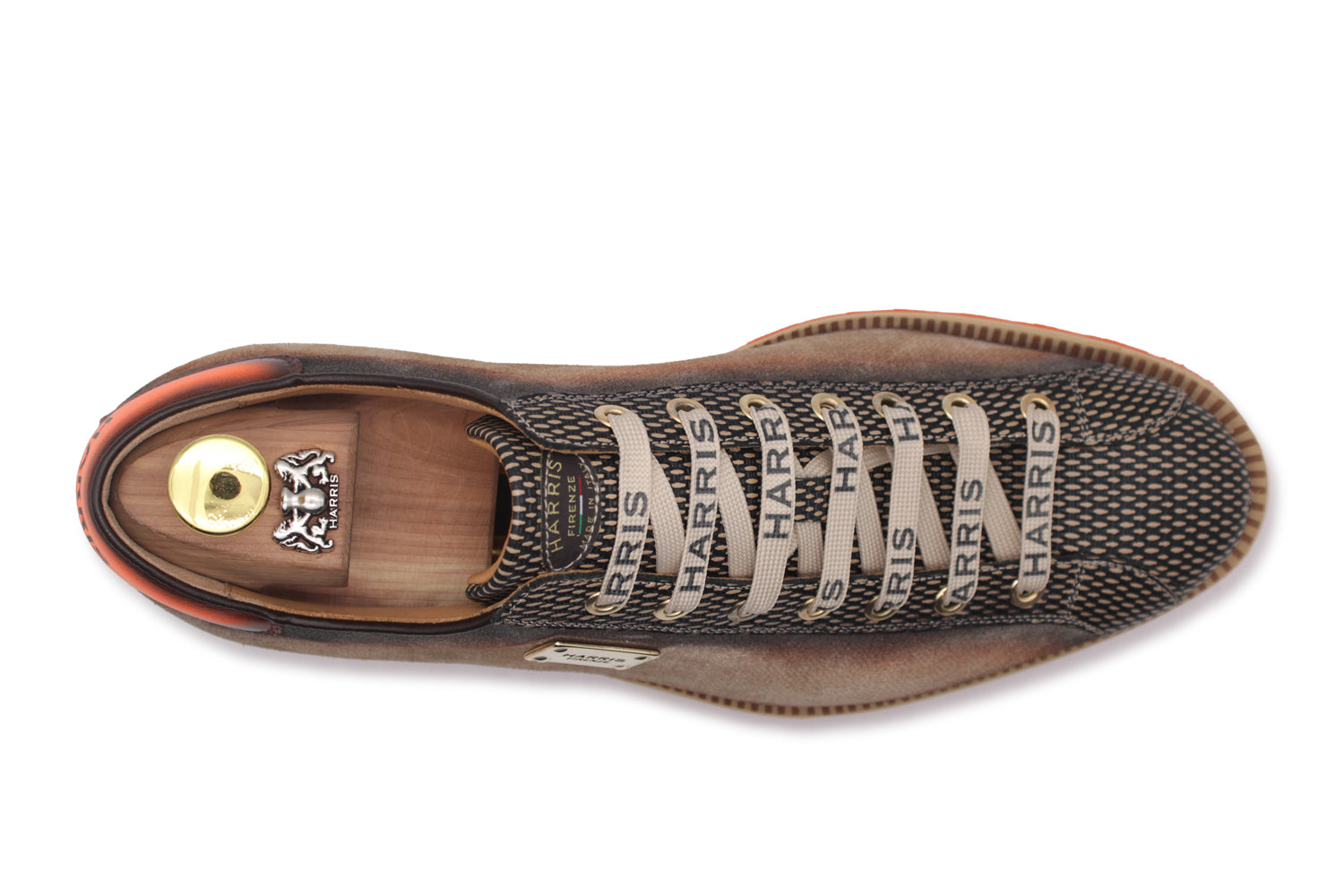 L'élégance tactile du daim imprimé effet tissu rencontre la précision des détails imprimés, le tout harmonisé par un ombrage expert à la main. Ornée d'accessoires dorés et complétée par une semelle de course en caoutchouc, cette chaussure est dédiée à ceux qui recherchent une texture distinctive et un confort sans compromis.