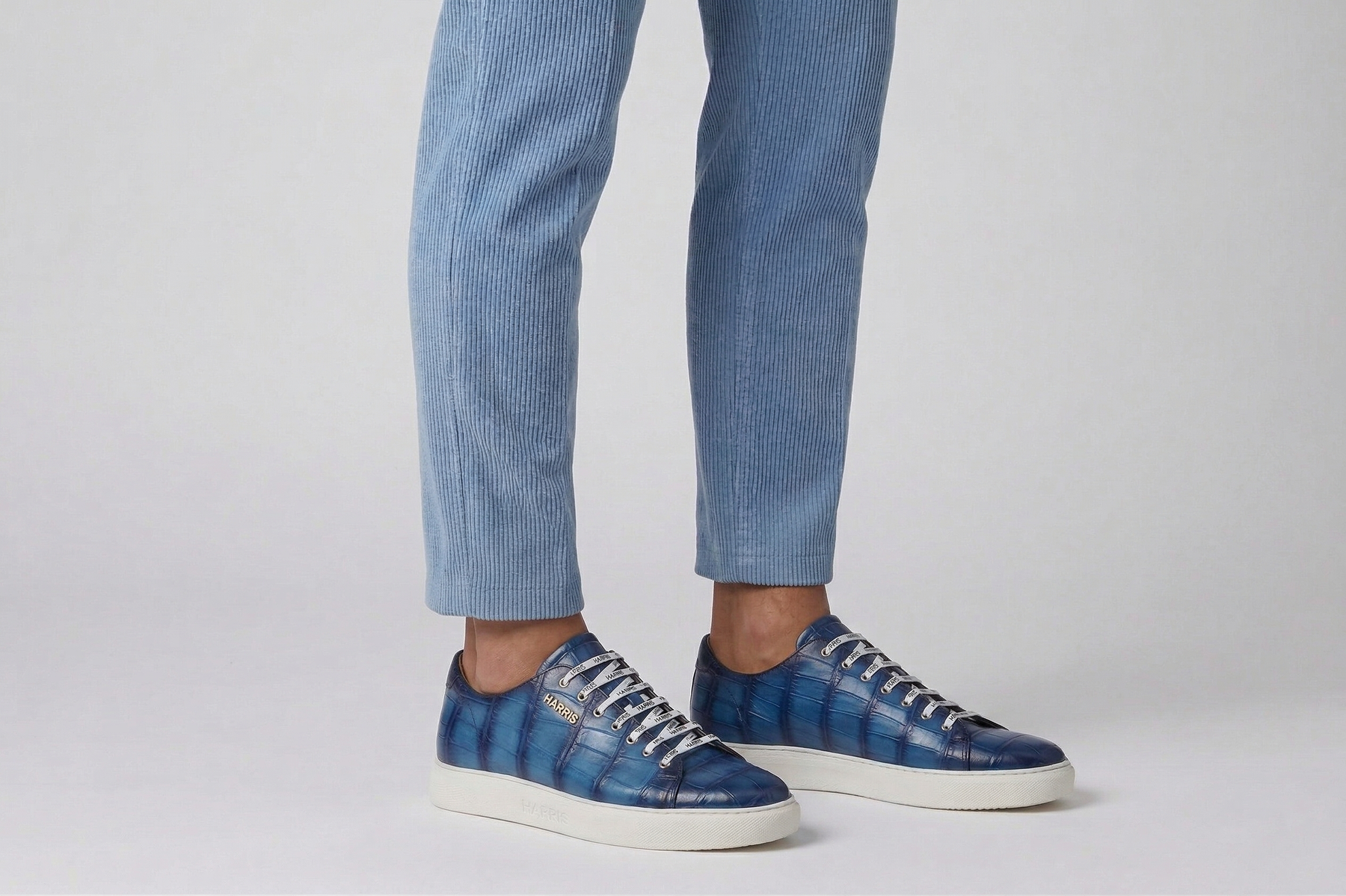 Sneaker realizzata in vera pelle di coccodrillo dipinta a mano, che esprime un’estetica unica e sofisticata. I dettagli scuri creano un elegante contrasto, mentre il logo Harris con finitura nickel aggiunge un accento raffinato. La suola a cassetta in gomma leggera color avorio dona equilibrio al design, mentre la lavorazione Blake Rapid garantisce qualità artigianale e durata nel tempo.