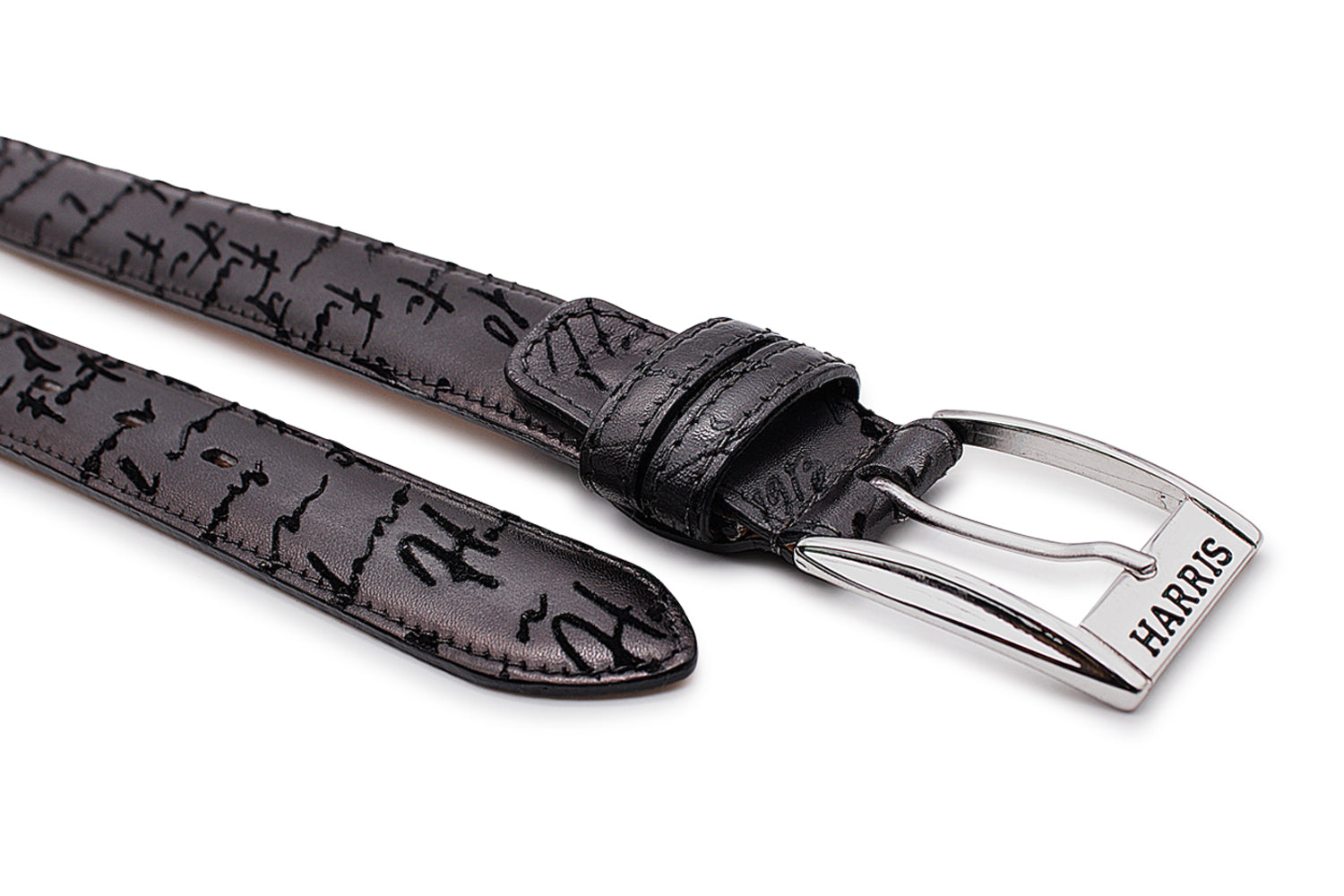 Questa cintura è realizzata in pelle di vitello pieno fiore liscio, impreziosita dalla particolare stampa Writer che le dona un’identità unica e ricercata. La fibbia in nickel completa il design con un accento moderno e discreto, disponibile nei toni dell'azzurro, marrone o grigio.
