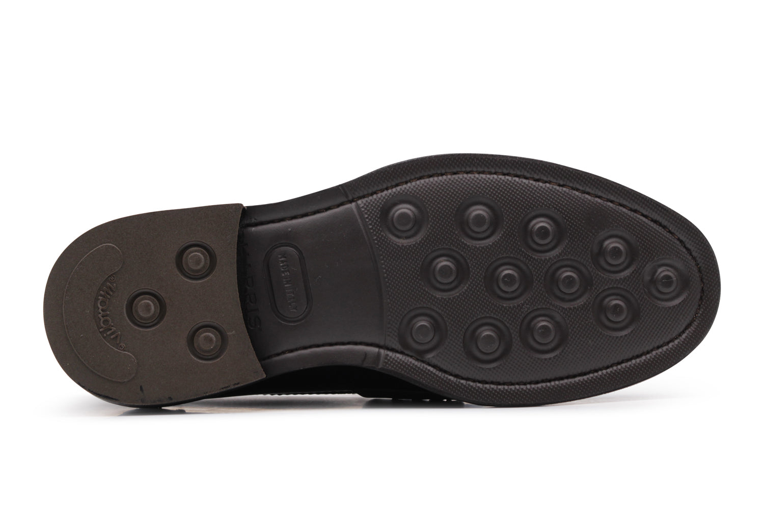 Pelle pieno fiore stampata chicco di riso. Texture sofisticata e tonalità profonde. La pelle anticata blu scuro, unita alla suola in cuoio e al bordo cucito a mano, racconta la maestria artigiana di Harris.