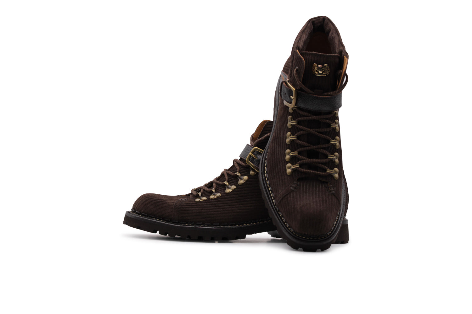 Polacchino in pelle scamosciata color testa di moro con effetto rigato, arricchito da dettagli in pelle e suola carrarmato in gomma. Il guardolo cucito e la lavorazione Blake Rapid uniscono artigianalità e spirito outdoor.