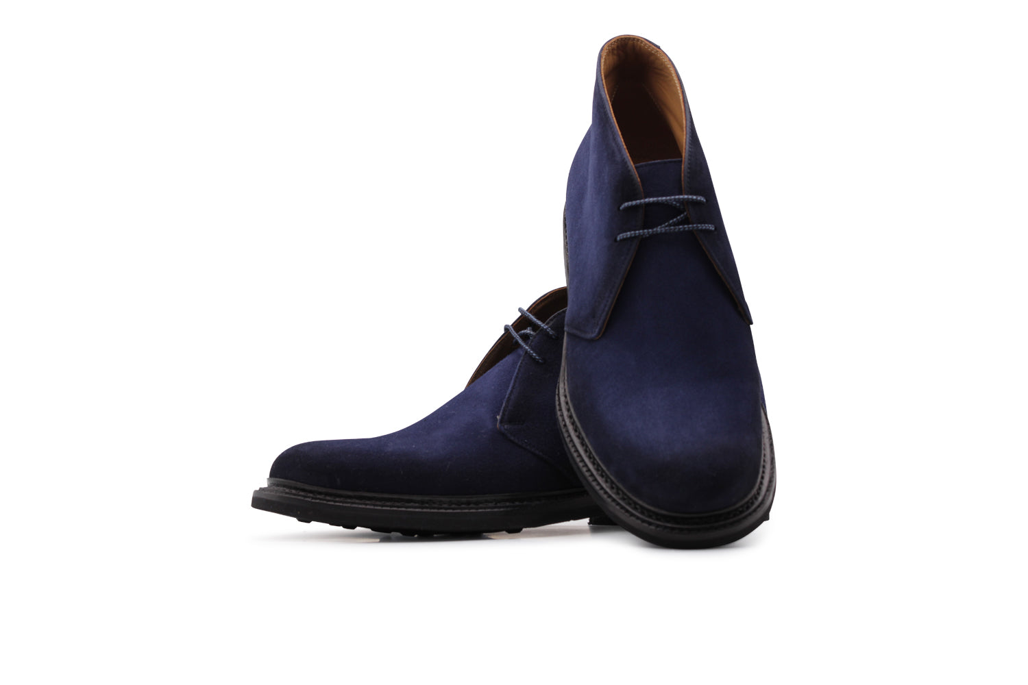 Polacchino in suede con sfumature scure eseguite a mano, suola in gomma Dainite e guardolo cucito. La lavorazione Blake Rapid offre solidità e sensibilità al passo, per un modello dal carattere deciso e contemporaneo.