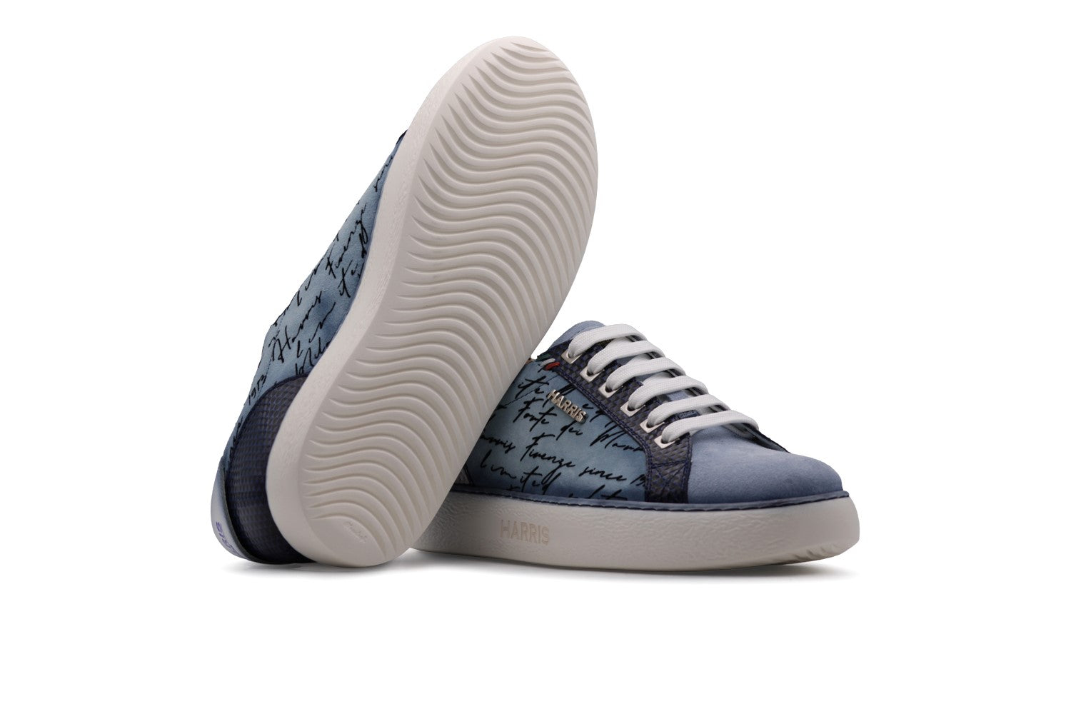 The creative soul of suede is enriched with "writer" details and printed inserts, finished with handmade shades. The Blake Rapid manufacturing combines with an ultra-light rubber sole, offering a shoe that is a perfect combination of cutting-edge design and technical tradition.